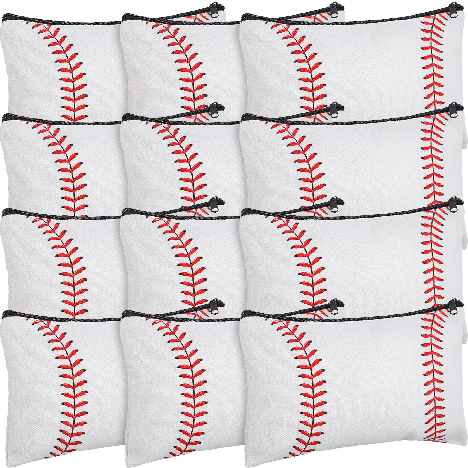 20 Pcs Sport Makeup Bag Sport Cosmetic Bag Canvas Gifts Softball Volleyball Football Baseball Accessories for Girls Toiletry Pouch with Zipper for Women Team Party Favors (Baseball, 8 x 5 Inch)