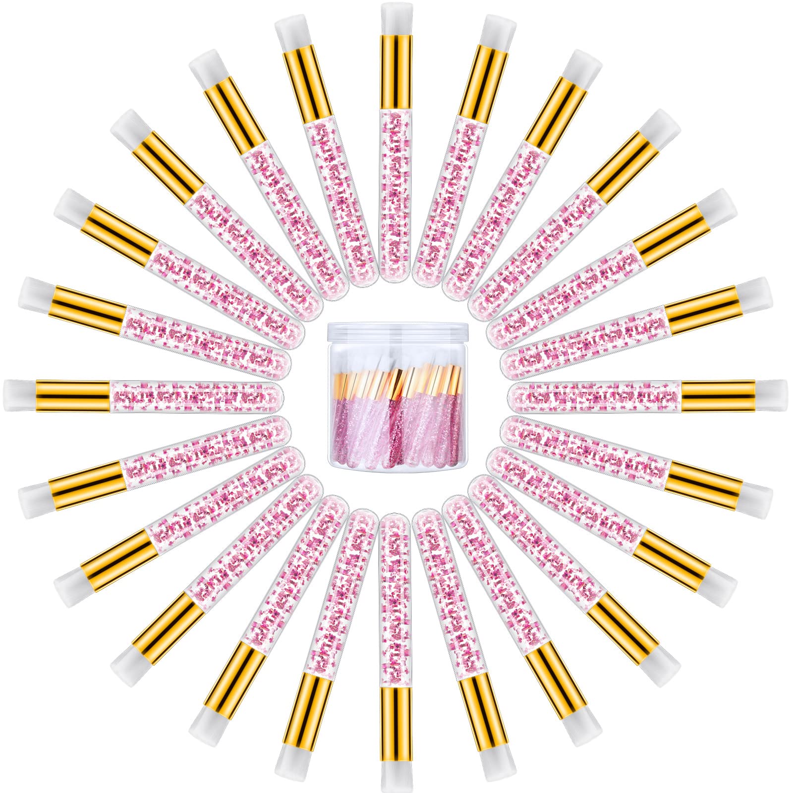 - Suitable Size: the size of each glitter handle brush is about 10 x 1 cm/ 3.94 x 0.39 inches, and it is equipped with a round plastic container, in which you can put your mascara brush, when you need outdoor cleaning equipment, you can put it in your backpack or luggage without taking up too much space, this lash shampoo brush is ideal for travel and daily business