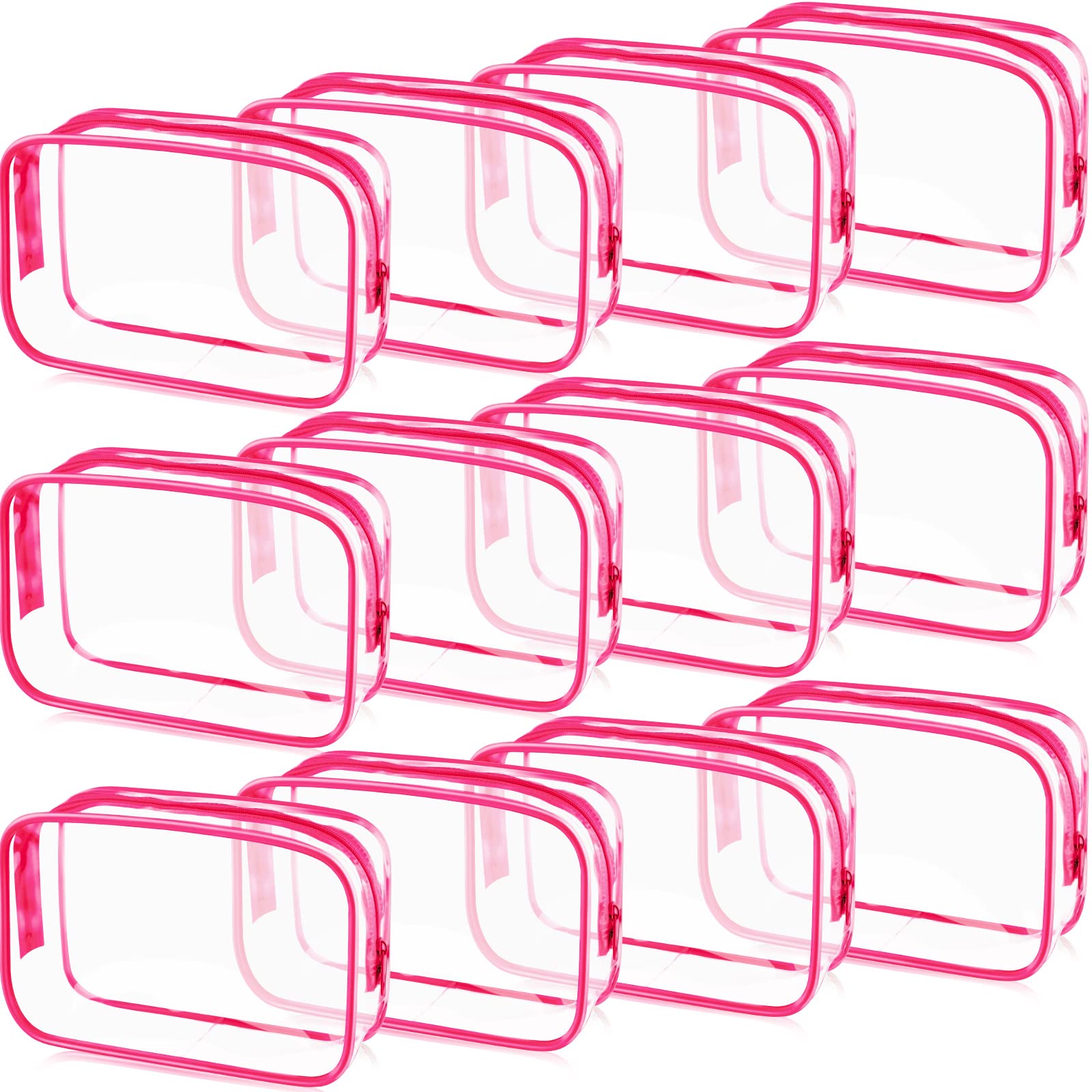 Weewooday 12 Pieces Clear Cosmetics Bag PVC Zippered Clear Toiletry Carry Pouch Portable Cosmetic Makeup Bag Waterproof Makeup Bag Vinyl Plastic Organizer Case for Vacation Bathroom (Rose Red, Large)