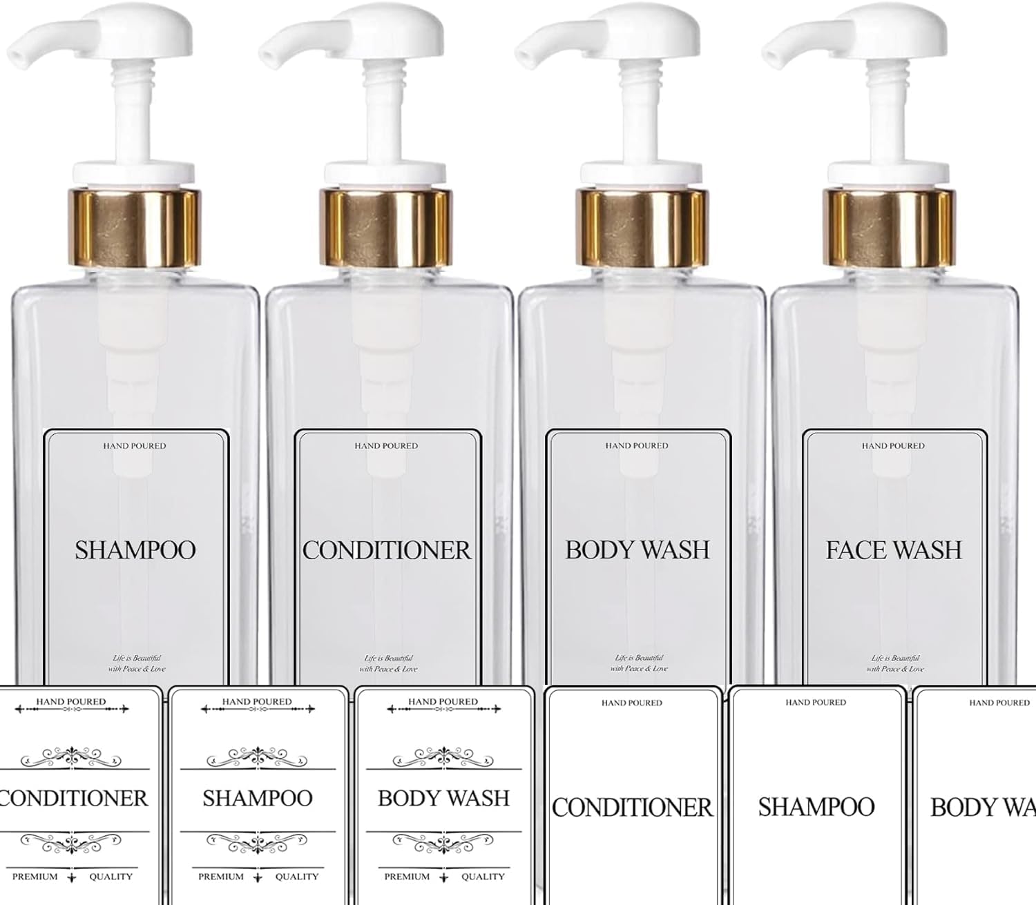 - 【Stickers Included】 Use waterproof labels: shampoo, conditioner, body wash, soap easily. Ideal for the modern bathroom and kitchen to dispense hand washing, DIY cleaners, essential oil blends etc.