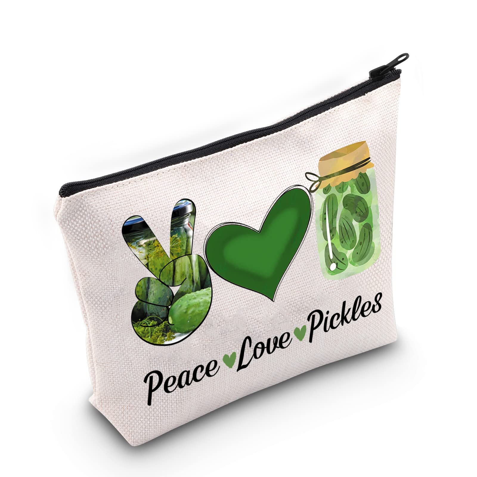 WZMPA Pickle Lover Cosmetic Makeup Bag Pickle Party Gift Peace Love Pickles Makeup Zipper Pouch Bag Pickle Merchandise (Peace Pickles)