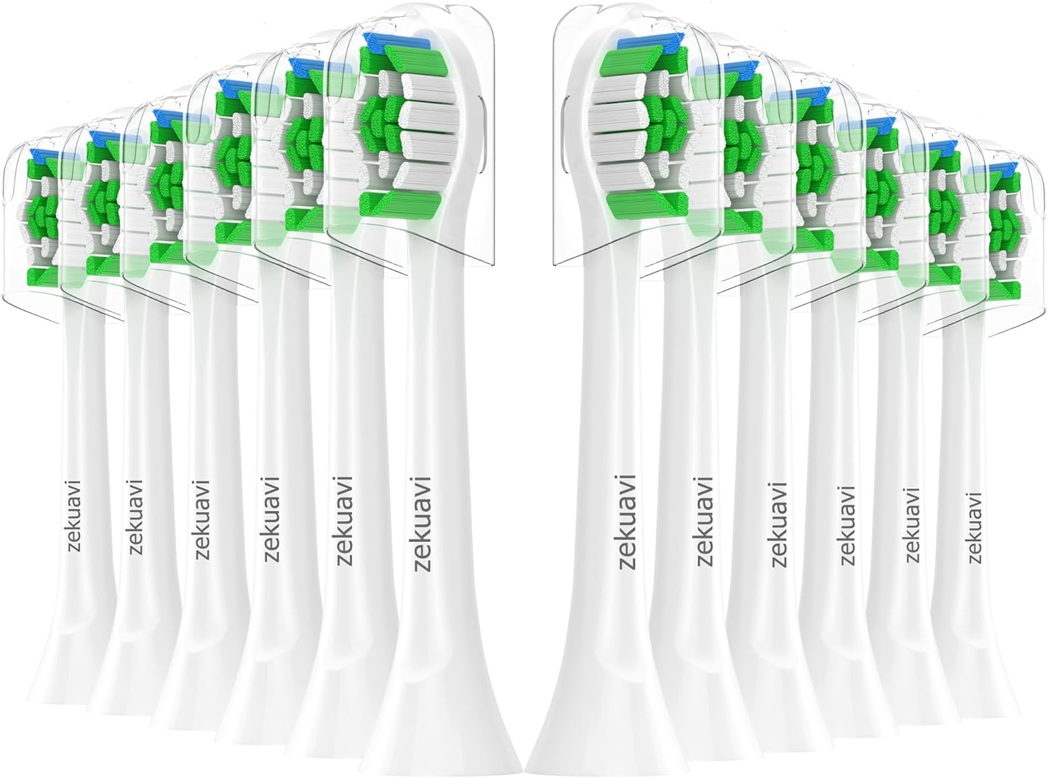 Zekuavi Replacement Brush Head Compatible with Phillips Sonicare Electric Toothbrush, Toothbrush Heads Fits for Philips Sonicare Protective Diamond Expert Daily 4100 5100 6100 1100 6500, White 12Pcs